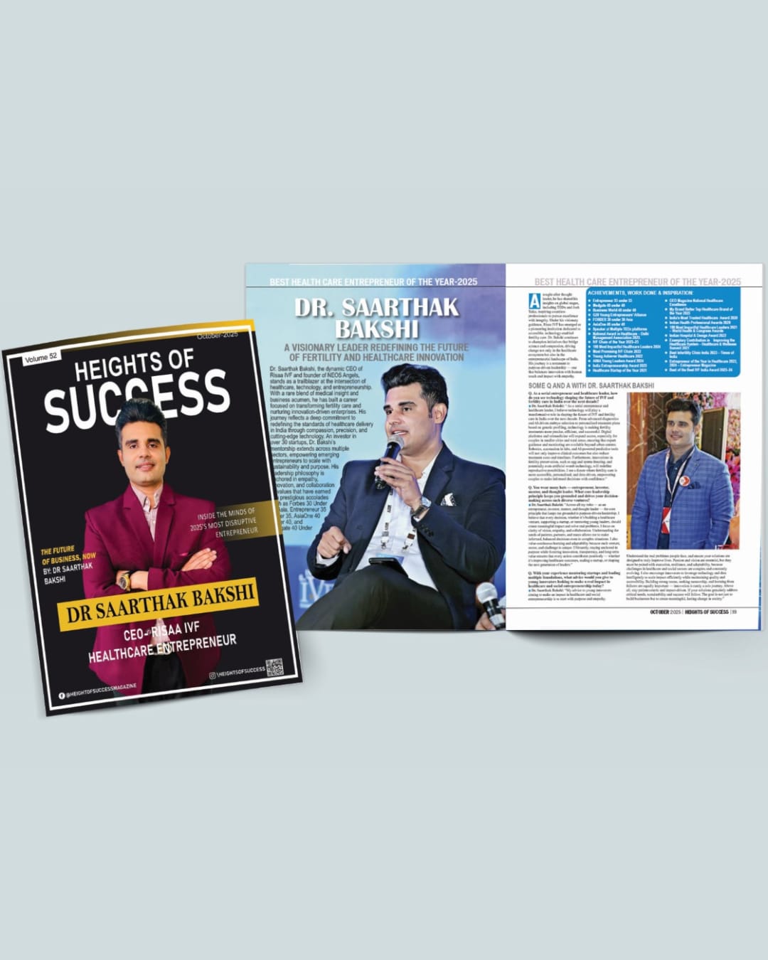Honoured to be featured as the 𝐁𝐞𝐬𝐭 𝐇𝐞𝐚𝐥𝐭𝐡 𝐂𝐚𝐫𝐞 𝐄𝐧𝐭𝐫𝐞𝐩𝐫𝐞𝐧𝐞𝐮𝐫 𝐨𝐟 𝐭𝐡𝐞 𝐘𝐞𝐚𝐫 2025 in 𝑯𝒆𝒊𝒈𝒉𝒕𝒔 𝒐𝒇 𝑺𝒖𝒄𝒄𝒆𝒔𝒔 𝑴𝒂𝒈𝒂𝒛𝒊𝒏𝒆 (𝑶𝒄𝒕𝒐𝒃𝒆𝒓 𝑬𝒅𝒊𝒕𝒊𝒐𝒏). This recognition is a reflection of years of dedication toward redefining fertility care, innovation, and compassionate healthcare delivery. Grateful to my incredible team, mentors, and everyone who continues to believe in our mission to make healthcare more accessible, empathetic, and future-ready.