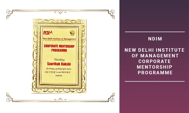 Honoured to receive a certificate from the New Delhi Institute of Management (NDIM) for being part of their Corporate Mentorship Programme. It was a truly enriching experience mentoring BBA and BCS students — exchanging ideas, discussing future goals, and exploring real-world perspectives together. Grateful for the recognition and the opportunity to contribute to shaping young minds who will lead tomorrow’s business world.